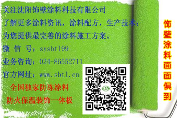 關(guān)注飾壁涂料微信公眾號(hào):sysbtl99 更多涂料資訊,配方,生產(chǎn)技術(shù),施工工藝;為您提供最完善的施工解決方案!全國(guó)獨(dú)家防凍涂料 防火保溫裝飾一體板