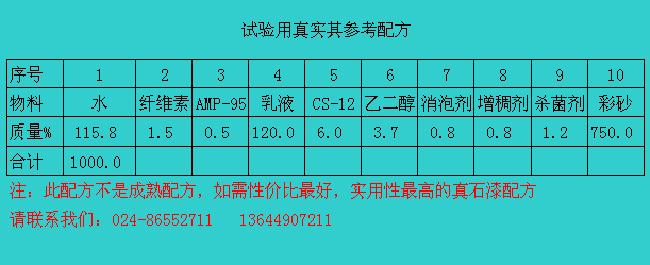 真石漆配方設計時首先應評估原材料性能,選擇耐水耐候性好、玻璃化溫度高的的乳液和增稠體系搭配,不用或少用對漆膜透明度和耐水性影響較大的膨潤土類增稠劑。骨料選擇細粉含量少、吸水量低的優(yōu)質彩砂,級配合理,兼顧遮蓋和質感效果。配方設計在儲存性、施工性和耐水白性能之間平衡取舍,減少原材料和配方引起的發(fā)花發(fā)白問題。