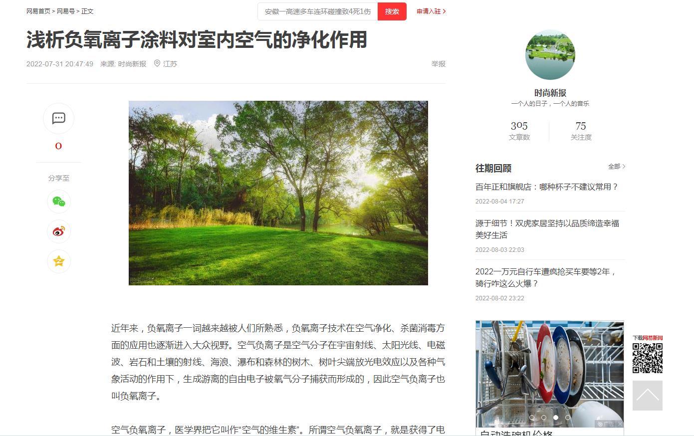網(wǎng)易新聞對(duì)我司負(fù)氧涂料產(chǎn)品的報(bào)道
