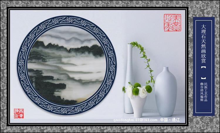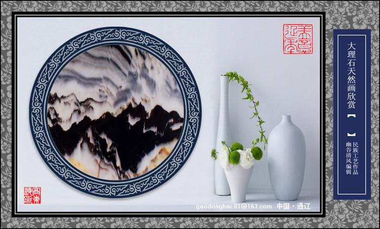 大理石畫之名貴,除礦帶狹窄,資源稀少,開采艱難外,主要在于大理石自身所具有的非凡美學(xué)格調(diào)。大理石畫中的水墨花石以黑白兩個極色為基調(diào),素雅脫俗,其天然畫面的意境,與中國傳統(tǒng)水墨畫極為神似,在表現(xiàn)形式上,水墨畫的勾皴點染,濃淡干濕,虛實疏密,潑墨留白等設(shè)色枝法以及以小觀大,尺幅千里的構(gòu)圖和透視方式都不謀而合。許多天然墨痕,均為神來之筆,其渾厚高古的格調(diào),令諸多的文人墨客為之傾倒。